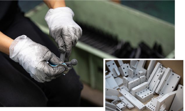 テクノロジーが進化した現代でもカバーすることのできない微調整やリカバリなどは、人の手で行う必要が生じます。丸成金属塗装には、熟練の技術者が多数在籍しており、長年に渡って築き上げてきた職人技を駆使して一つずつ丁寧に仕上げを行なっております。